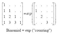 and a step into The analysis of the binomial/Pascal matrix is extended and more systematized. Additionally a matrix-representation of common summation procedures is investigated. Since I mainly deal with the binomial-matrix, this is almost all about variants of the Euler-summation. The article is in the state of a draft; I'm currently studying the heuristics and assumtions in more details and shall provide more links to literature and online-resources. See pmatrix.pdf Keywords: Euler summation, divergent series, matrix summation method