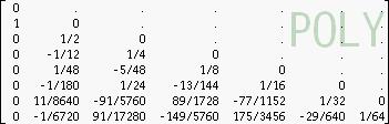 Matrix POLY of coefficients for the