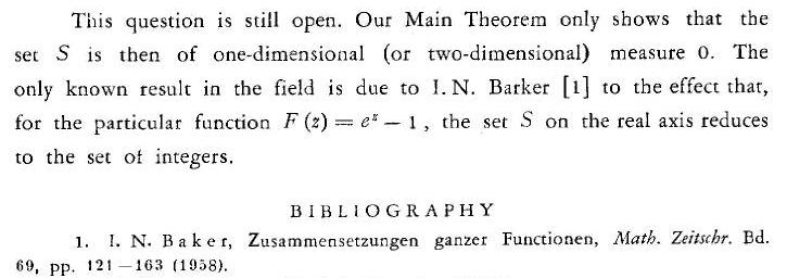 [2] Baker, I.N.; Zusammensetzung ganzer Funktionen, Math Zeitschr. Bd. 69 pp 121-163 (1958) (also online at digicenter göttingen)